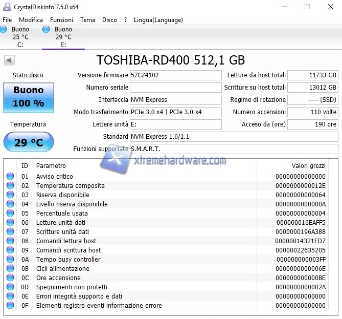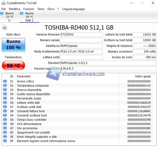 Abbiamo utilizzato solo questi due software in quanto CrystalDiskInfo dà una giusta e adeguata lettura della temperatura di esercizio del drive mentre CrystalDiskMark effettua una serie di test sul drive atti a darci una completa visione delle prestazioni.