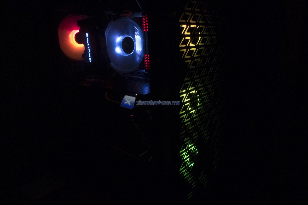 Corsair ci ha inviato anche un ulteriore ventola che come avrete visto nelle immagini dell’illuminazione è stata prontamente installata per completare il set di ventole preinstallate e garantire un’illuminazione completa nel case.