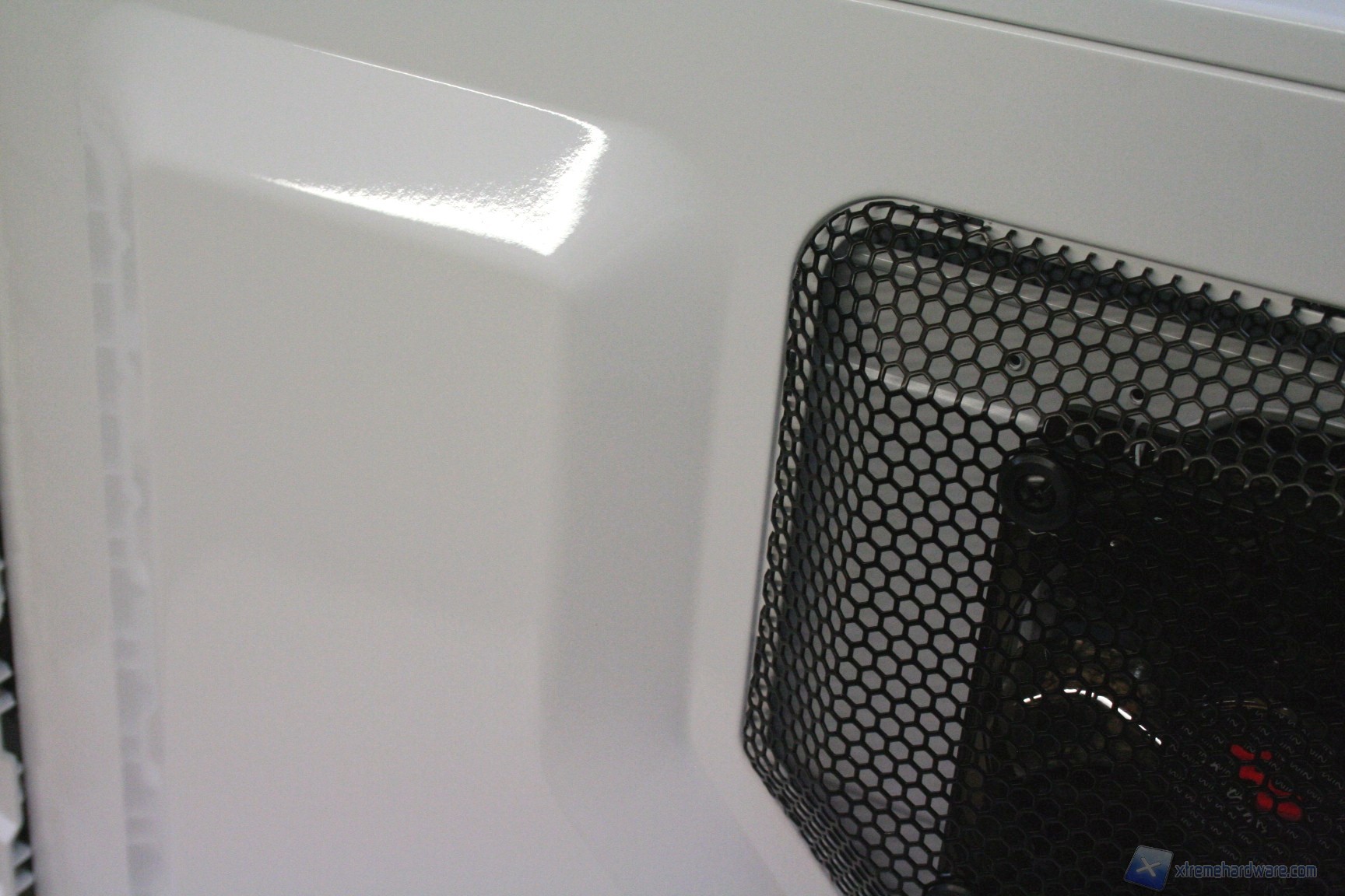 Presente in due differenti colorazioni, nera e bianca, quest’ultima è quella che abbiamo ricevuto ed è dotata di una paratia laterale in mesh, quindi ventilata. L’impressione iniziale è più che buona, anche perché dal vivo il cabinet rende molto bene e si nota ad esempio una grande cura per i dettagli, sia nella parte sinistra che nella parte frontale e superiore, dove troviamo addirittura delle plastiche a protezione di singole scalanature di plastica dura. La verniciatura è di buona qualità e complessivamente la rigidità è soddisfacente. Procediamo all’analisi dei dettagli.