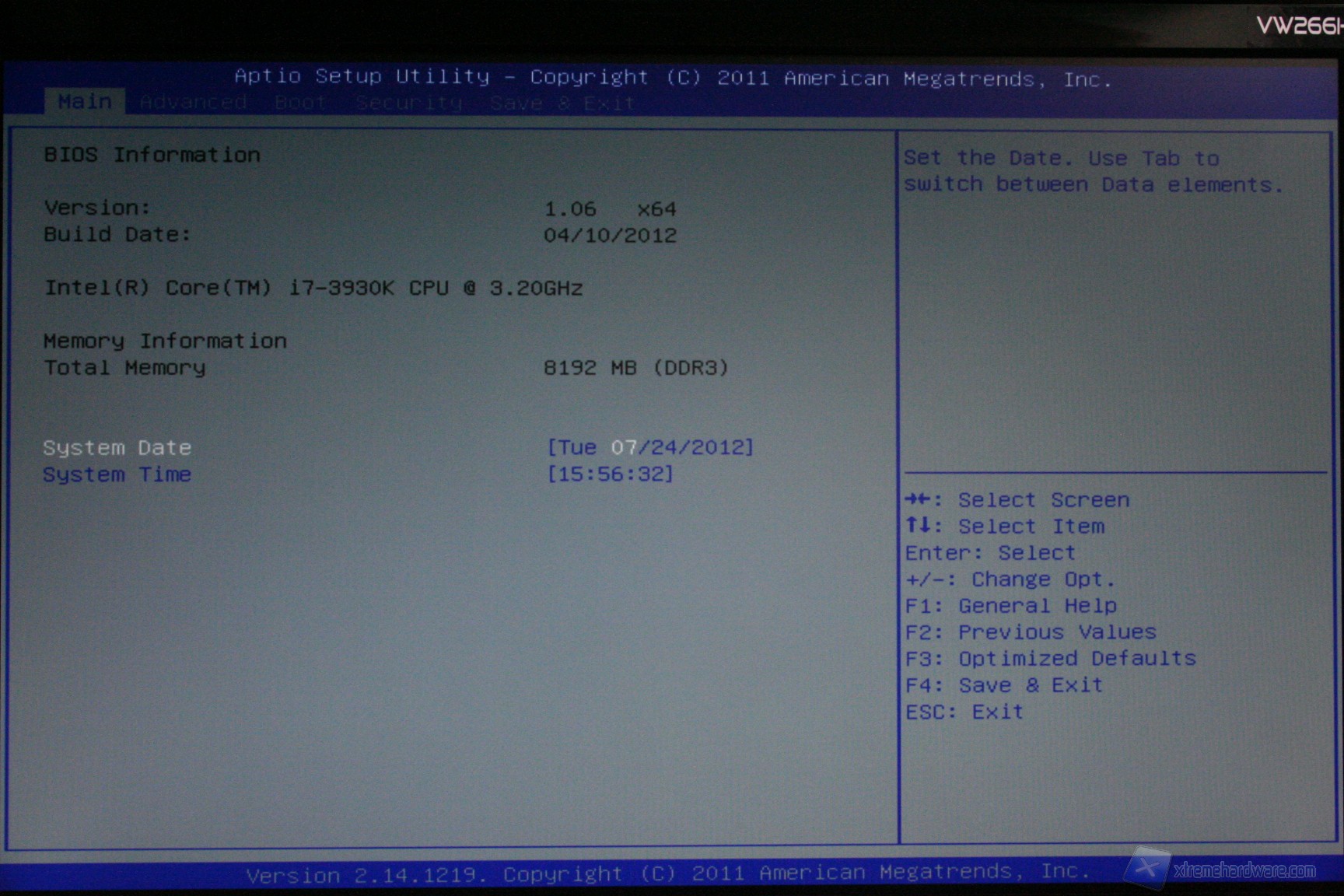 La scheda madre è dotata di un BIOS prodotto da America Megatrends Inc. (AMI), con interfaccia SPI ed una Flash-ROM da 32MBit. Vi sono le classiche impostazioni, più in aggiunta alcuni parametri molto blandi per poter effettuare l'overclock delle CPU di Intel. Il BIOS è suddiviso in quattro categorie principali, più un ulteriore schermata che permettere i salvataggi delle impostazioni. Nella videata principale (Main) ci vengono fornite informazioni sulla CPU installata, il quantitativo di RAM di sistema, orario, data, e la versione del BIOS.