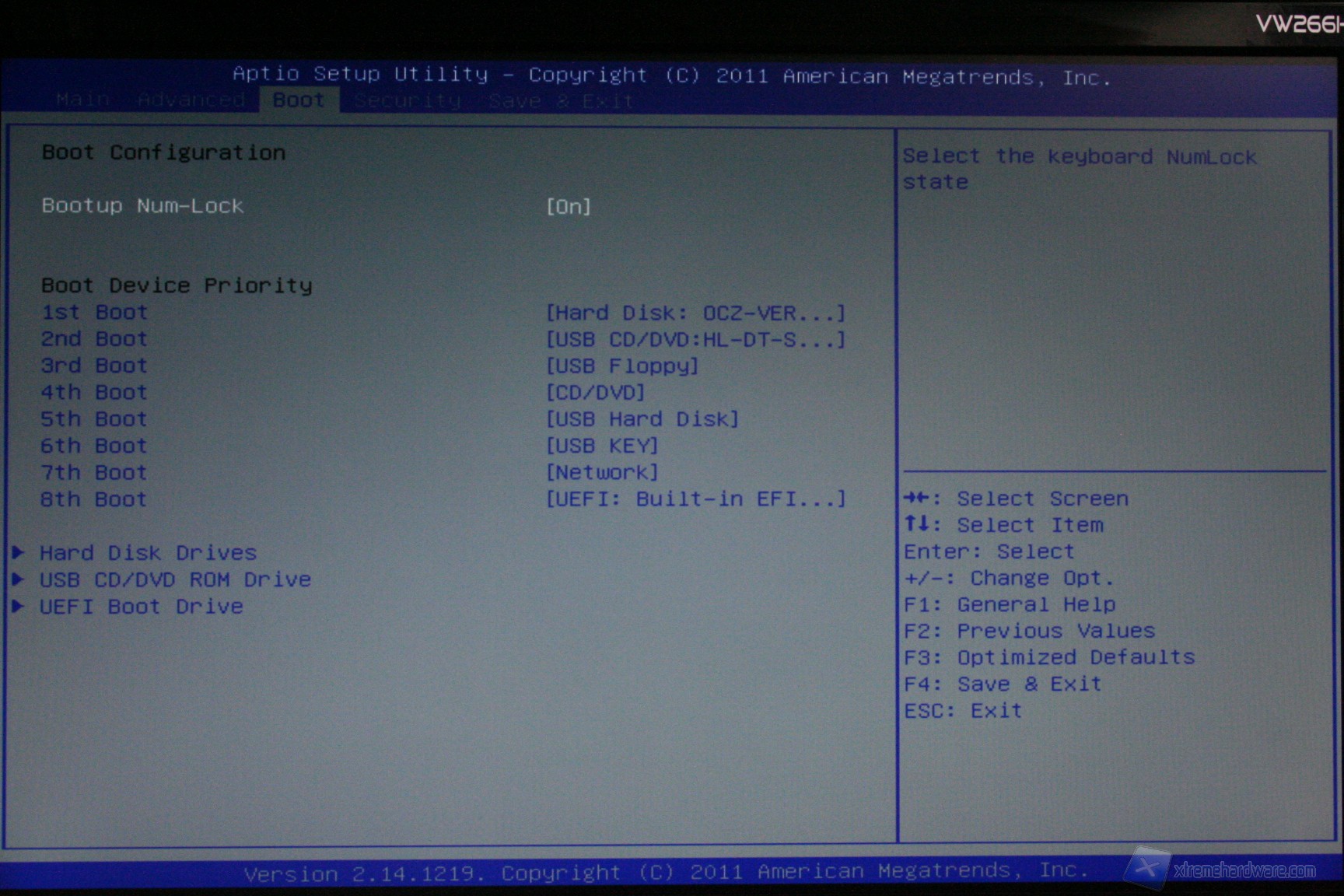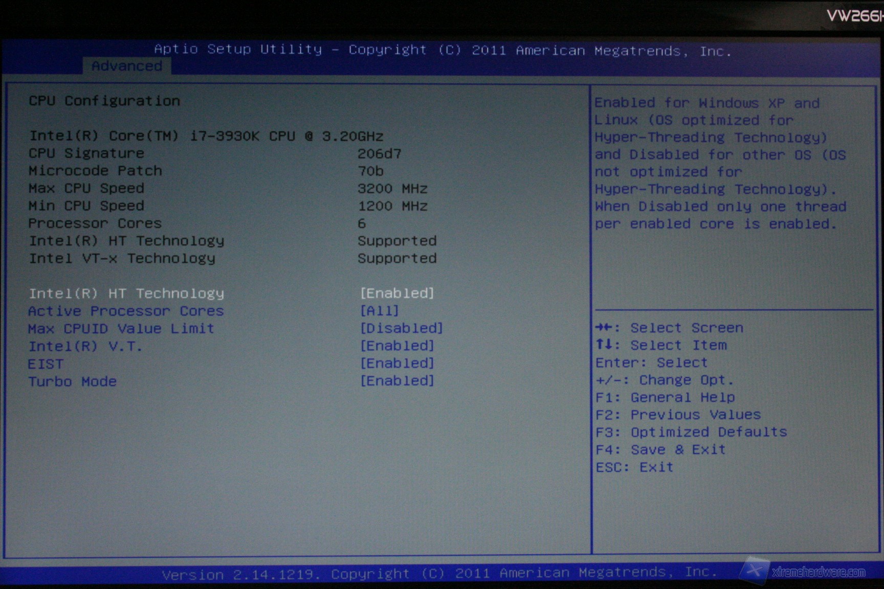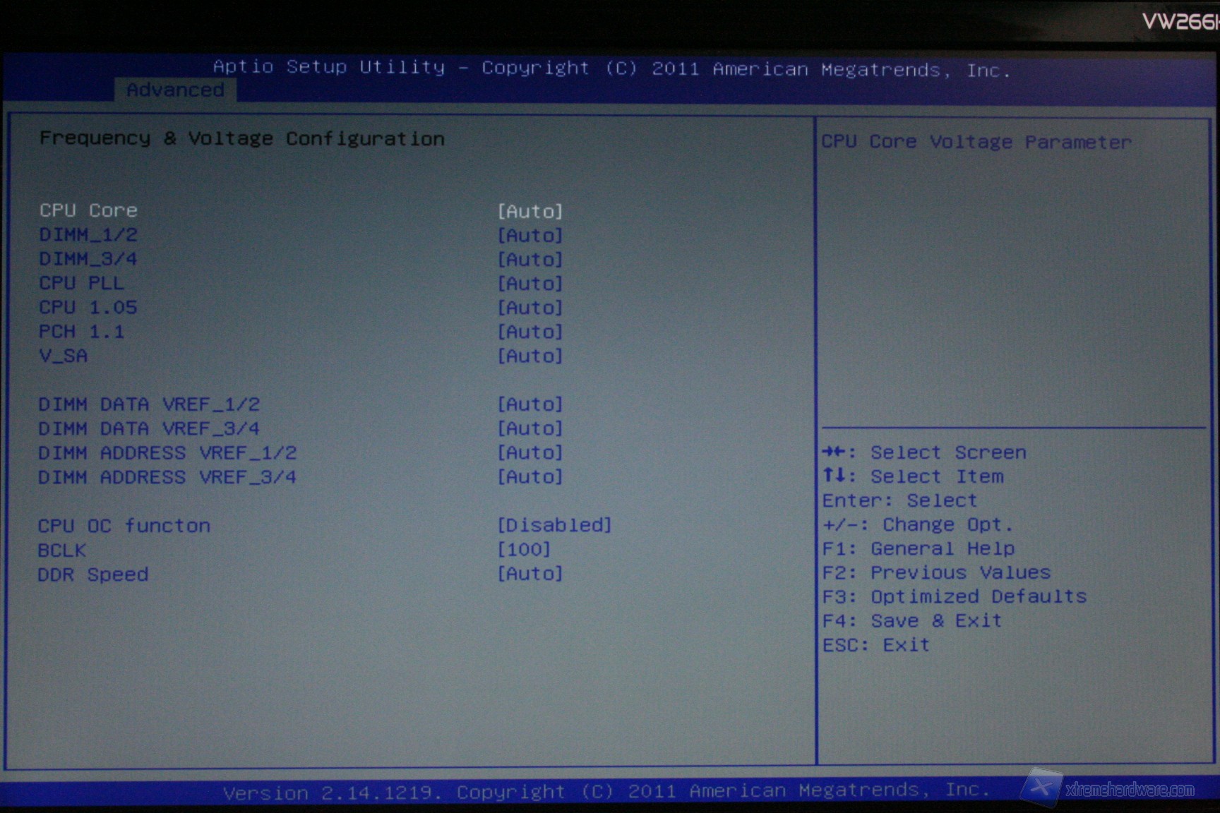Questa pagina è determinante per i settaggi avanzati del sistema e si potrà agire sui voltaggi, le frequenze ed i parametri della CPU, tra cui la tecnologia Hyper Threading (HT), il numero di core attivi, sui risparmi energetici (Speed Step), sulla tecnologia di virtualizzazione e sulla tecnologia Turbo. Infine possiamo controllare la frequenza finale della CPU agendo sui moltiplicatori (solo per le versioni K e X). Purtroppo mancano diversi parametri avanzati come la semplice regolazione della frequenza della memoria e dei timing, variazione del massimo TDP ed altre funzioni che normalmente sono presenti in BIOS più avanzati, però è bene chiarire che per questa tipologia di prodotti, non servono. L'altra schermata utile all'overclock è quella relativa ai voltaggi di sistema (Voltage Configuration) dove è possibile intervenire su diversi parametri, come il Vcore della CPU, delle memorie, del VTT e del Chipset. La terza schermata (Boot) ci permette di configurare la priorità del Boot dei nostri HDD, SSD, ODD ed altre periferiche anche USB.
